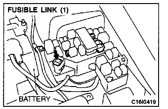 If the harness wires between horn relay connector A-15X and fusible link (1) are damaged, repair them.
