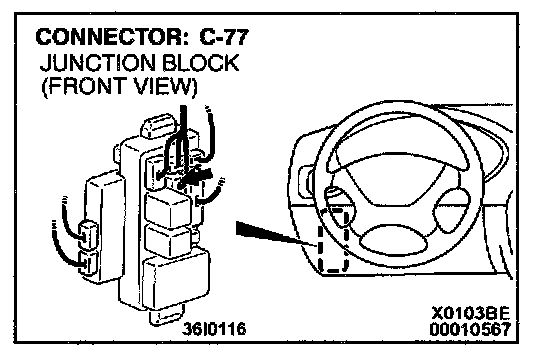 NOTE: After checking junction block connectors C-85 and C-77 and intermediate connector C-66, check the wires. If junction block connectors C-85 and C-77 and intermediate connector C-66 are damaged, repair or replace them. Refer to Harness Connector Inspection.
