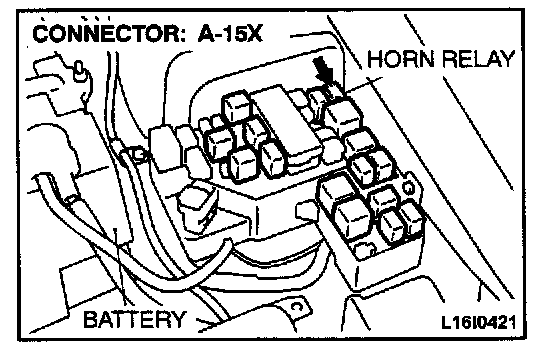 STEP 8. Check the horn relay power supply circuit at the horn relay connector A-15X.