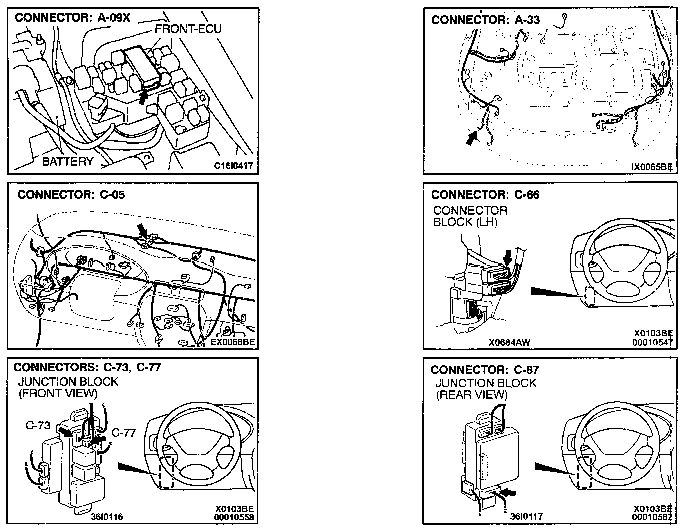 STEP 7. Check the washer motor connector A-33 and front-ECU connector A-09X for damage.