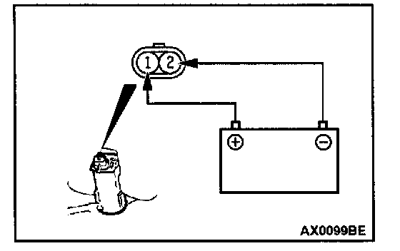 3. Check that the water squirts out strongly when battery positive voltage is applied to terminals 1 and 2.