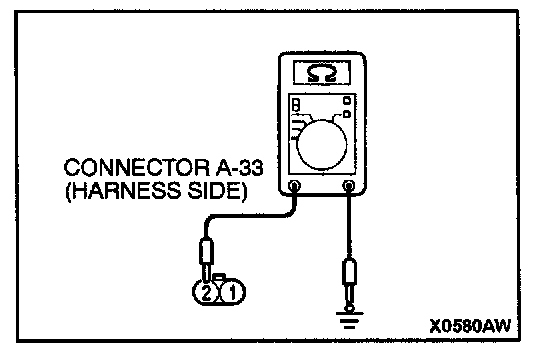 1. Disconnect the washer motor connector A-33 and measure at the harness side.