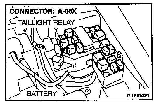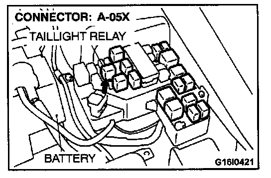 STEP 5. Check the taillight relay connector A-05X for damage.