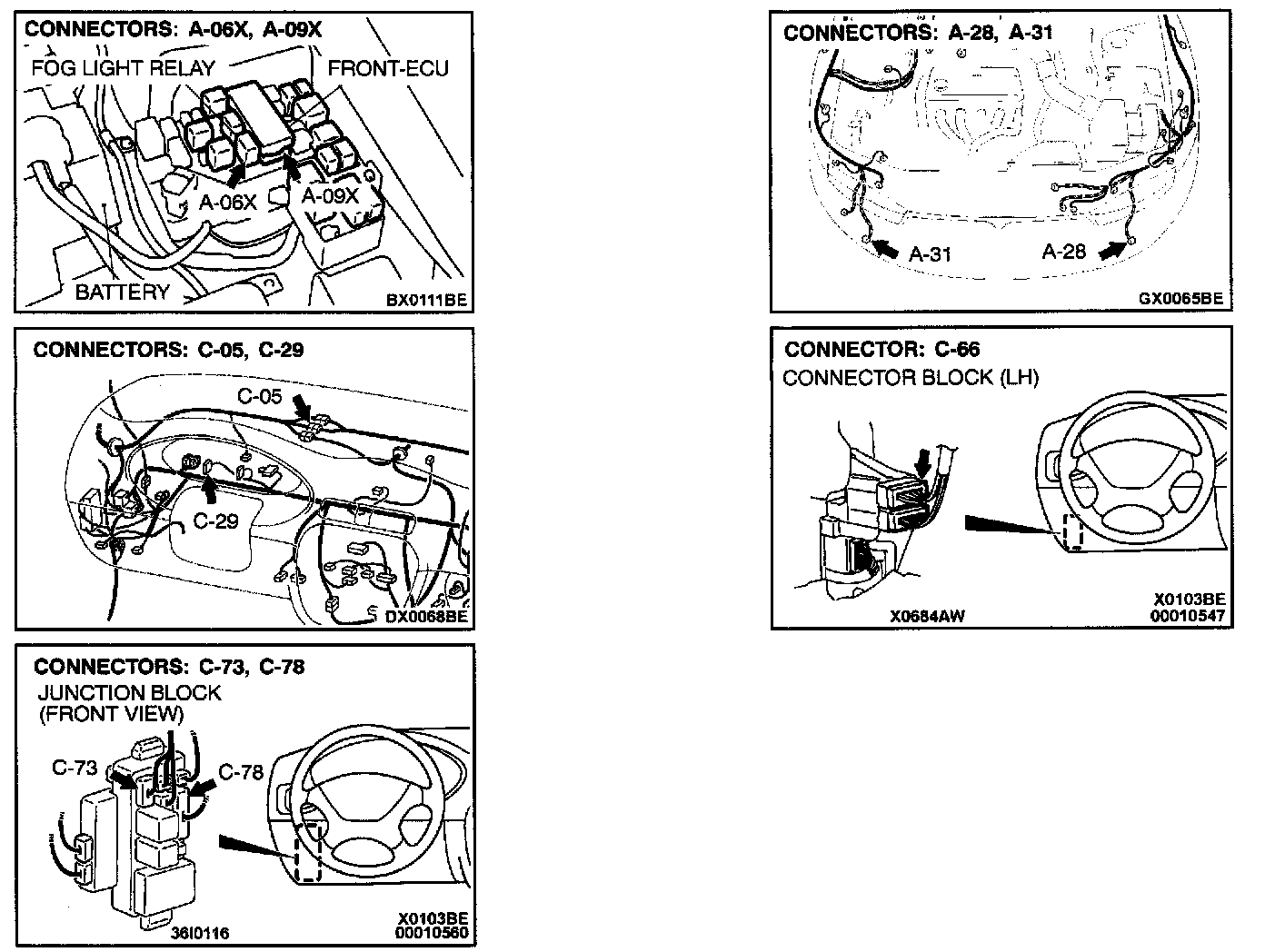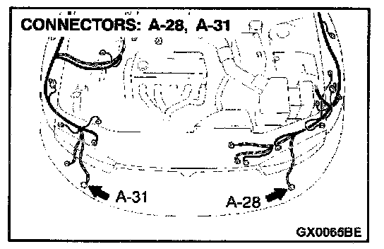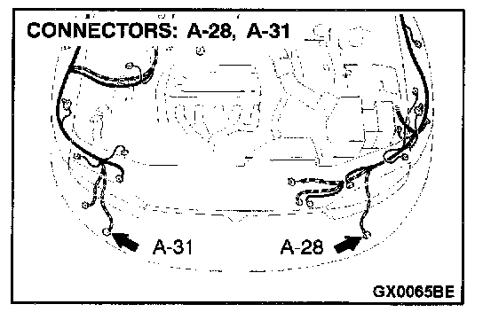 STEP 9. Check the fog light connectors A-28 and A-31 and combination meter connector C-29 for damage.