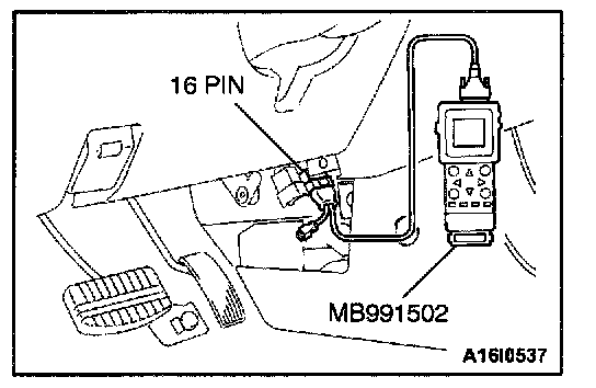 1. Connect scan tool MB991502 to the data link connector.
