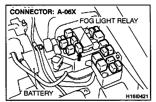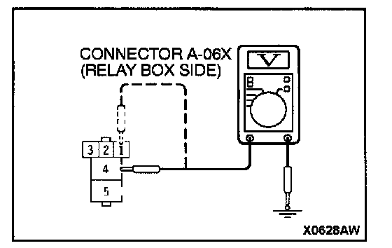 1. Disconnect the fog light relay connector A-06X and measure at the relay box side.