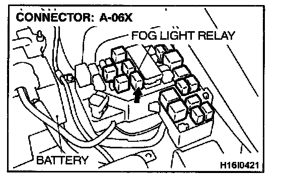 STEP 6. Check the harness wire between fog light relay connector A-06X and battery.