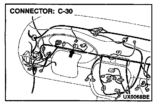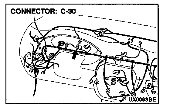 3. install the bulb to the combination meter, and then measure the resistance between connector C-30 terminals 1 and 2. The resistance reading at this time should be much the same as the resistance measured at Step (2).