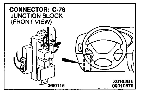 NOTE: After checking junction block connectors C-78 and C-84, joint connector C-57 and intermediate connector C-68, check the wires. If junction block connectors C-78 and C-84, joint connector C-57 and intermediate connector C-66 damaged, repair or replace them. Refer to Harness Connector Inspection.