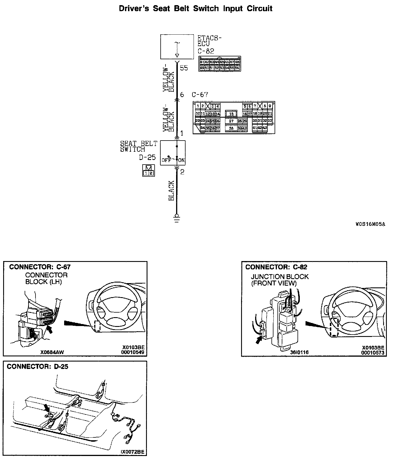 STEP 5. Check the driver's seat belt switch connector D-25 and ETACS-ECU connector C-82 for damage.