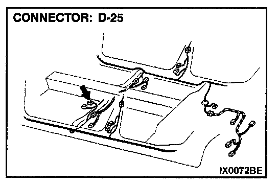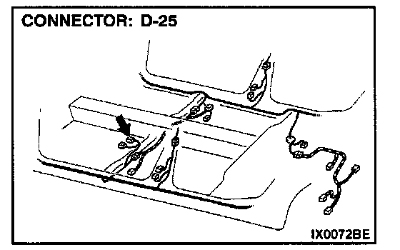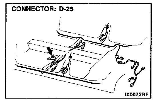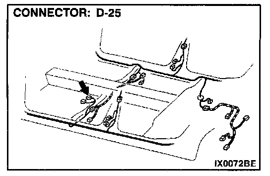 STEP 3. Check driver's seat belt switch connector D-25 for damage.