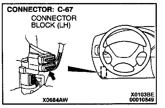 NOTE: After checking intermediate connector C-67, check the wires. If intermediate connector C-67 is damaged, repair or replace it. Refer to Harness Connector Inspection.