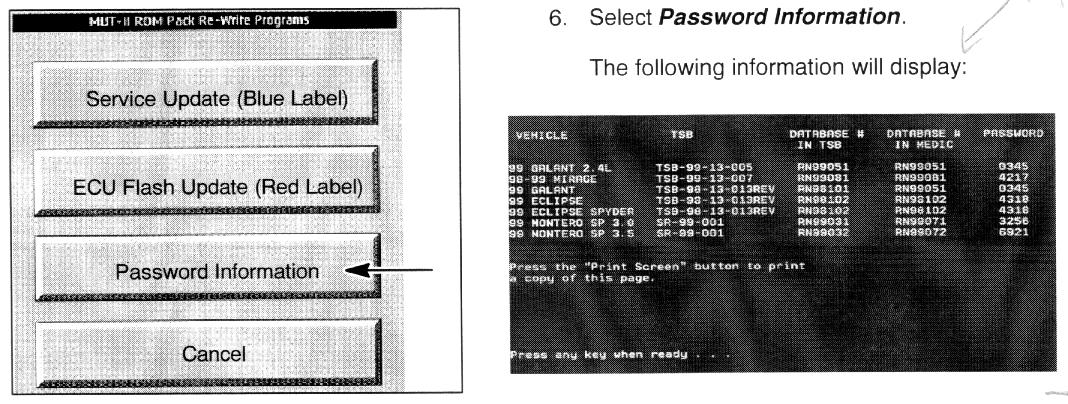 5. From the MEDIC main menu, select MUT-II ROM Pack Re-Write.