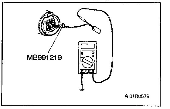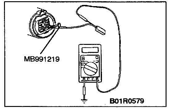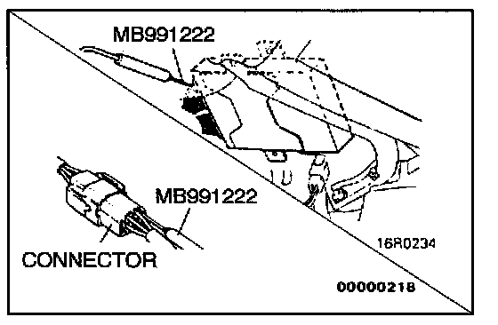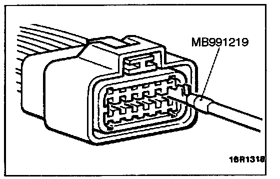 Be sure to use special tool, MB991219. Never insert a test probe from the harness side, as this so will reduce the waterproof performance and result in corrosion.