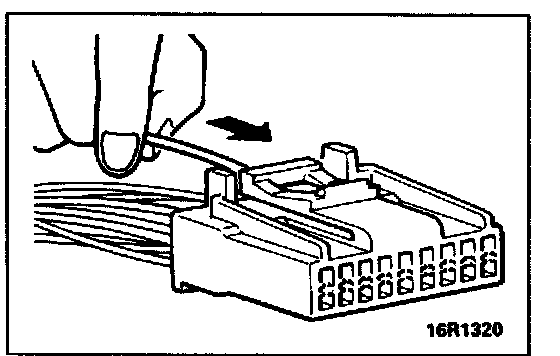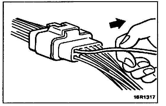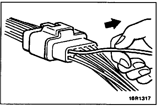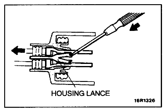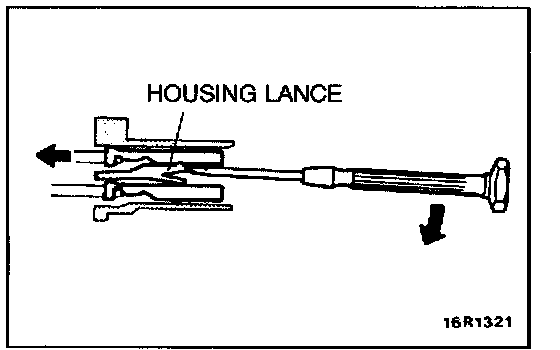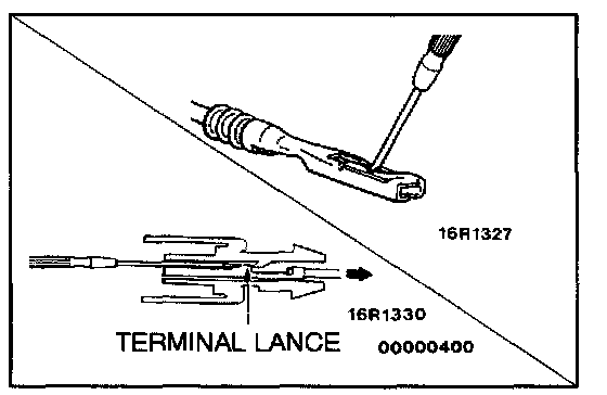 Loosely engaged terminals can be repaired by removing the female terminal from the connector housing and raising its lance to establish better engagement. Removal of the connector terminal used for MFI and INVECS-II control circuit can be done in the following manner.