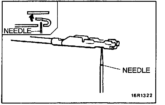 Check by inserting the test probe from the harness side. Note that if the connector (control unit, etc.) is too small to permit insertion of the test probe, it should not be forced; use special tool, MB991222 for this purpose.