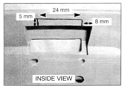 a. Mark a 5 mm X 24 mm opening as shown, 8 mm from each side of the original latch opening.