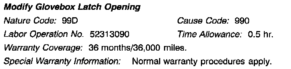 This bulletin describes how to modify the glovebox housing to provide clearance for a replacement latch that does not fit the opening.