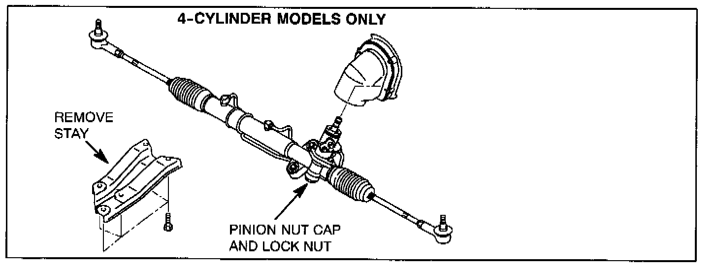 a If the threaded shaft is below the face of the pinion lock nut, replace the steering gear assembly as described in Group 37A of the appropriate service manual. Refer to the PARTS INFORMATION section of this bulletin.