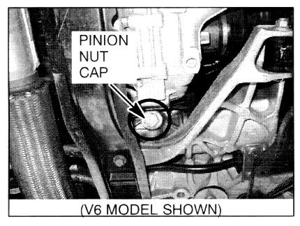 6. Remove the pinion nut cap. On V6 models, use a 24 mm socket. On 4-cylinder models, use a 24 mm box end wrench.