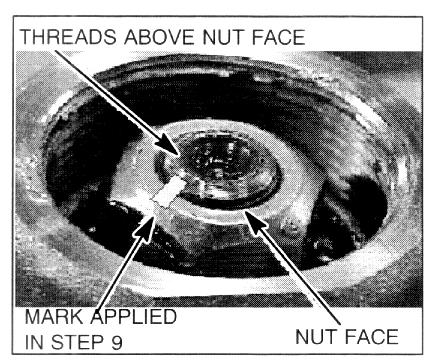 b. Inspect the mark on the nut. If the mark has moved less than 90 degrees (1/4 turn), continue with Step 10.