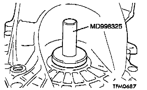 2. Using special tool MD998325, press fit the oil seal into the transaxle case.