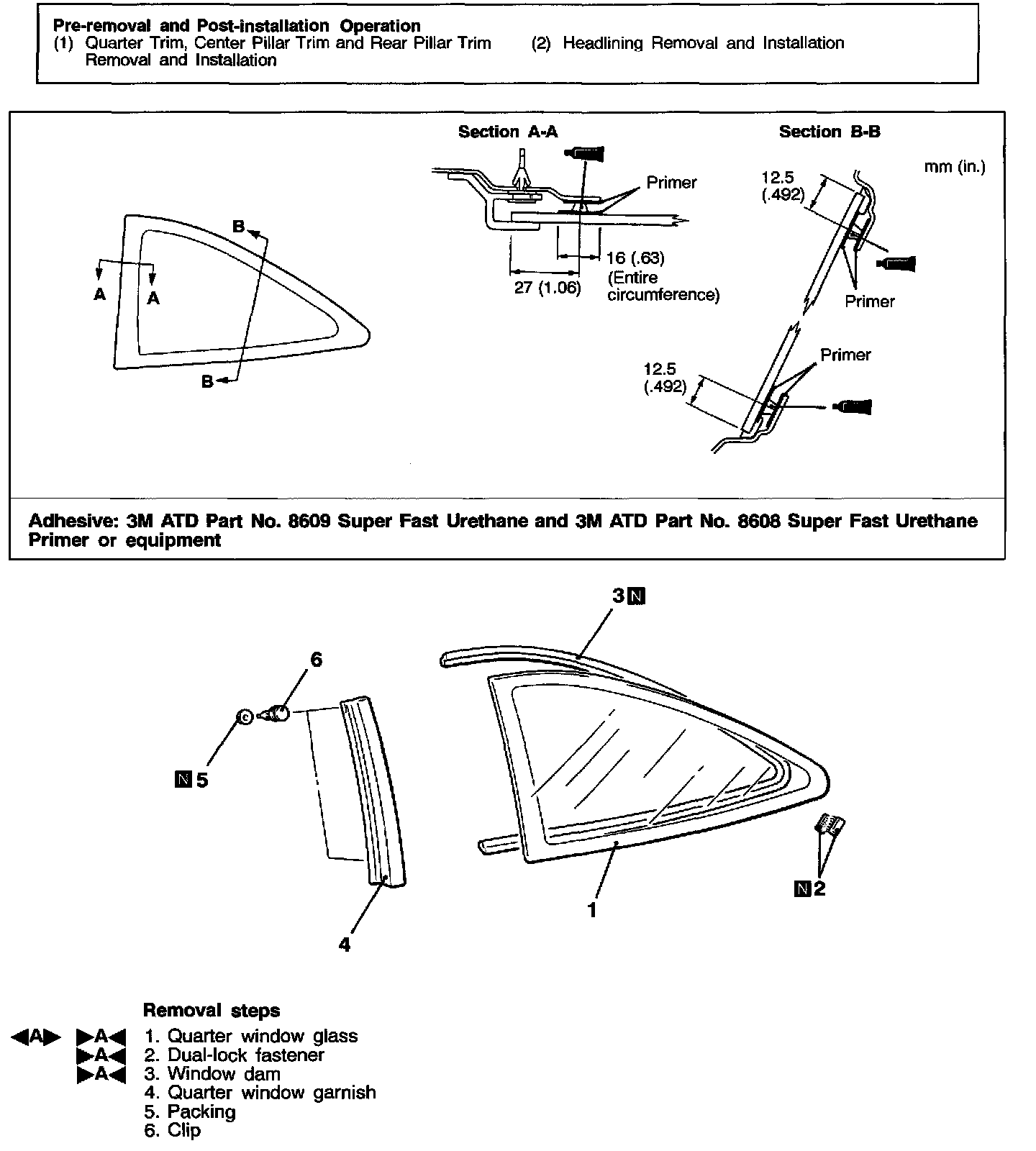 ]A[ WINDOW DAM/DUAL-LOCK FASTENER/QUARTER WINDOW GLASS INSTALLATION