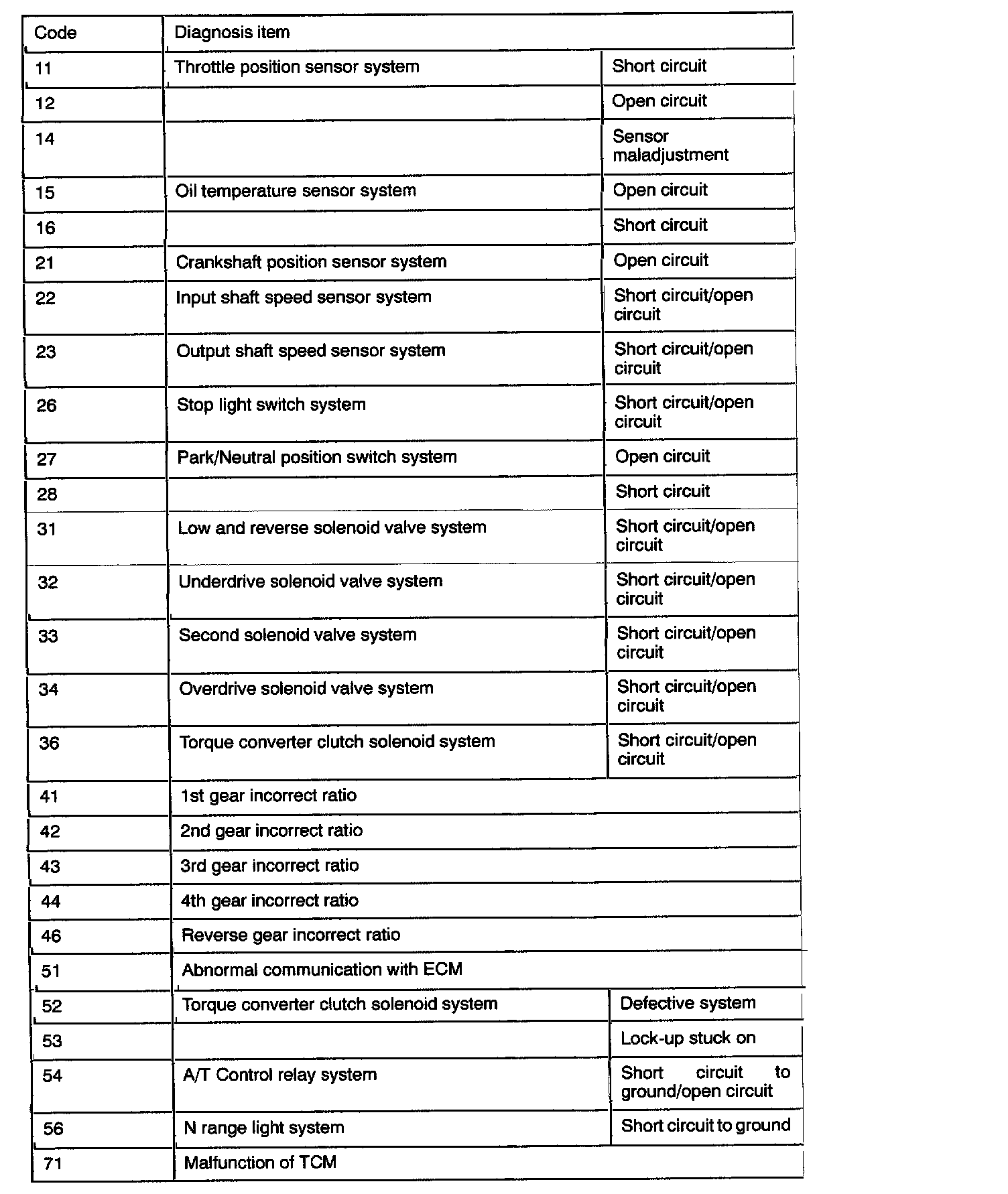 Diagnostic Trouble Code Descriptions