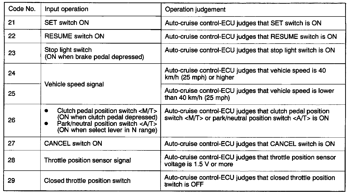 4. Operate each switch listed in the input check table and take a reading of the input switch codes with the scan tool.