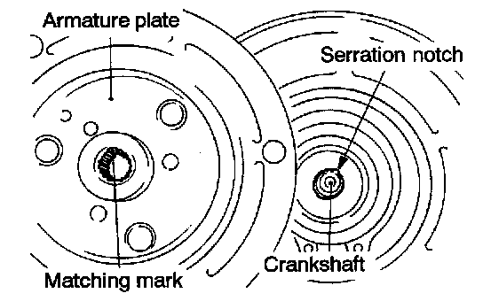 Align the mating mark of the crankshaft spline and the mating mark of the armature plate, and then fit them together.