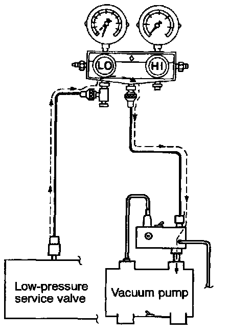 CAUTION: If the negative pressure drops, increase the tightness of the connections, and then repeat the evacuation procedure from step (12).