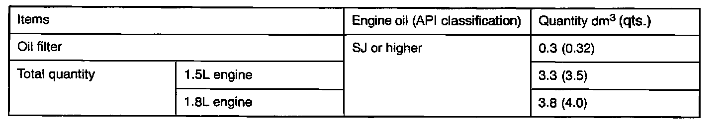 <1.5L engine> 3.3 dm3 (3.5 qts.)