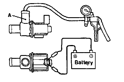 1. Connect a hand vacuum pump to nipple (A) of the solenoid.