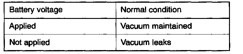 2. Check airtightness by applying a vacuum with voltage applied directly from the battery to the evaporative emission ventilation solenoid and without applying voltage.
