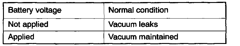 4. Check airtightness by applying a vacuum with voltage applied directly from the battery to the EGR control solenoid valve and without applying voltage.