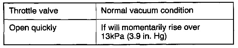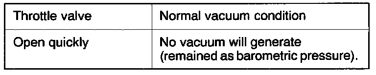 2. Regarding the engine in cold and hot conditions, check the condition of vacuum when engine rpm is increased by opening the throttle valve quickly.