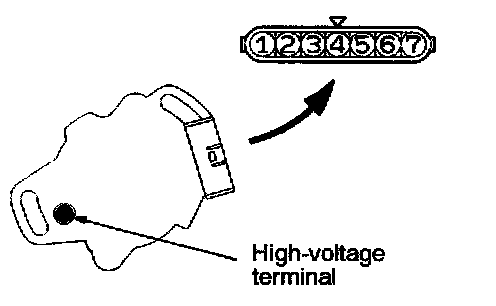 Measure the resistance between the high-voltage terminal and connector terminal 1.