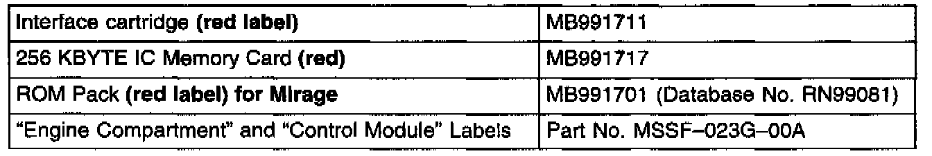 7. Install the red label interface cartridge to the MUT-II. Then install the red memory card and the red label ROM pack. Be sure to use the Mirage ROM pack (Database No. RN99081).