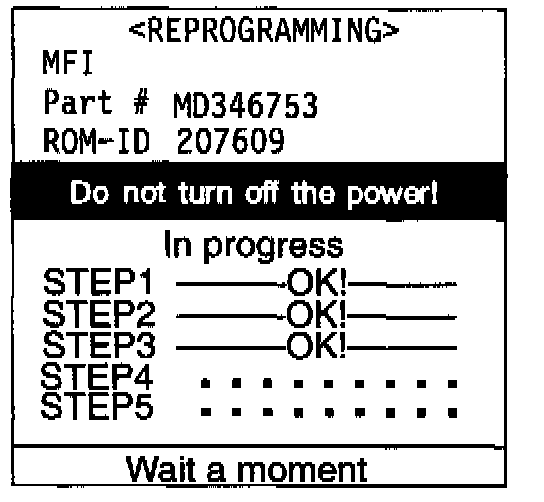 14. The MUT-II will display this screen as it reprograms the PCM. It will take a few minutes to complete.