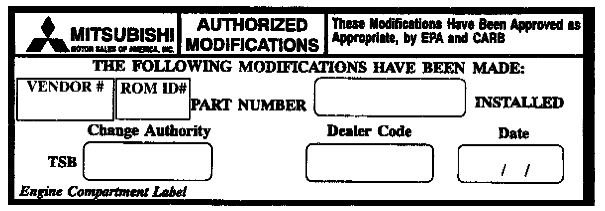 If the Engine Compartment Label does not provide a space for the vendor number and ROM ID #, write this information in as shown: