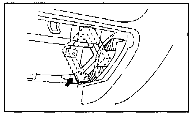 18. Carefully remove all dirt and oil from the vacant area shown on the underside of the hood. Affix the Engine Compartment label in the area shown.