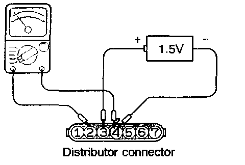 CAUTION: This test must be performed quickly (in less than 10 seconds) to prevent coil from burning and ignition power transistor from breaking.