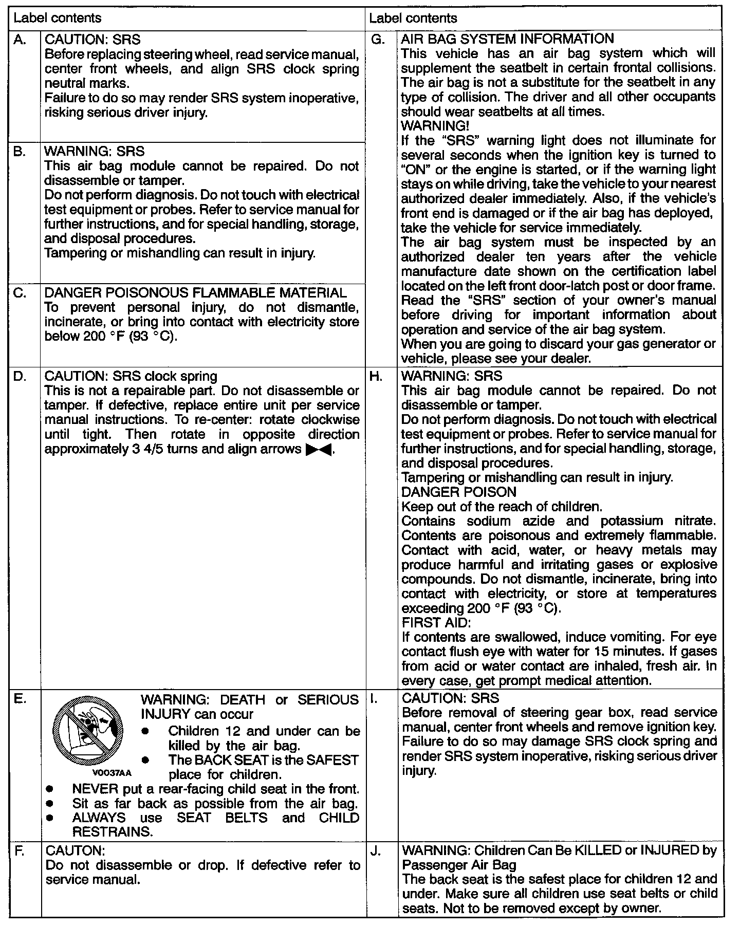 Follow label instructions when servicing SRS.