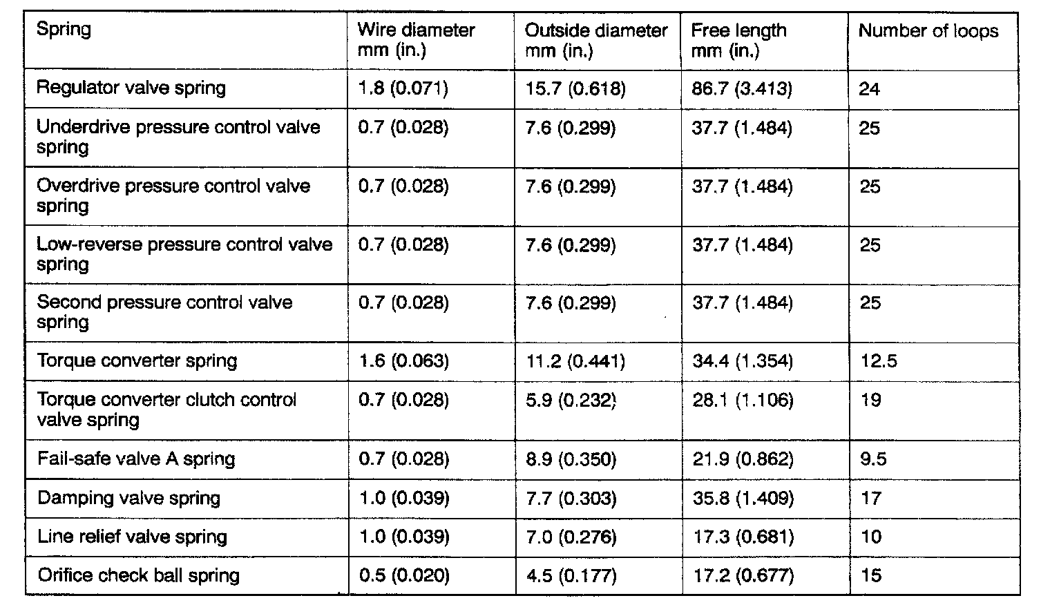 F4A41/F4A42 4-spd A/T, Valve Body Springs: