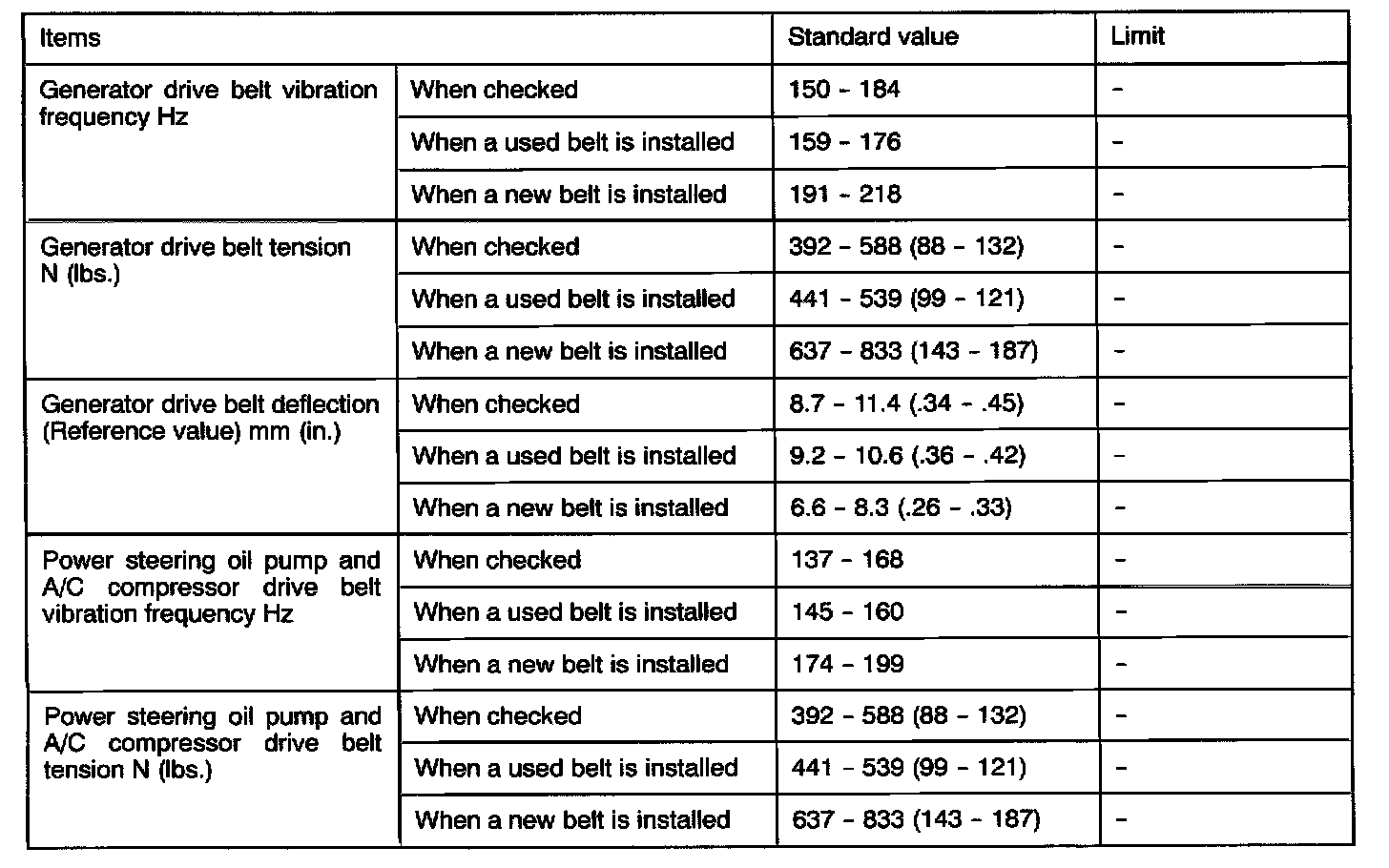Engine-On Vehicle Service Specifications