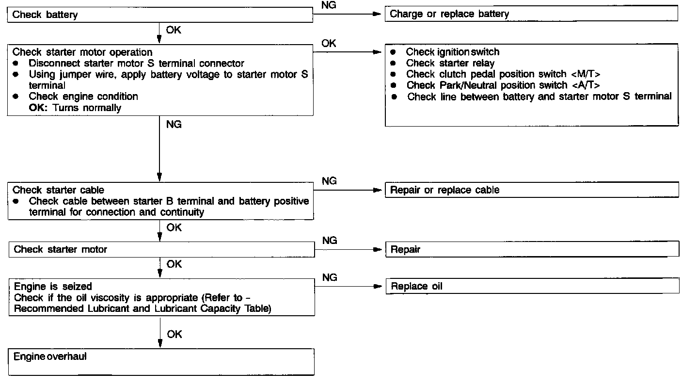 The starting system troubleshooting guide is shown in the chart.