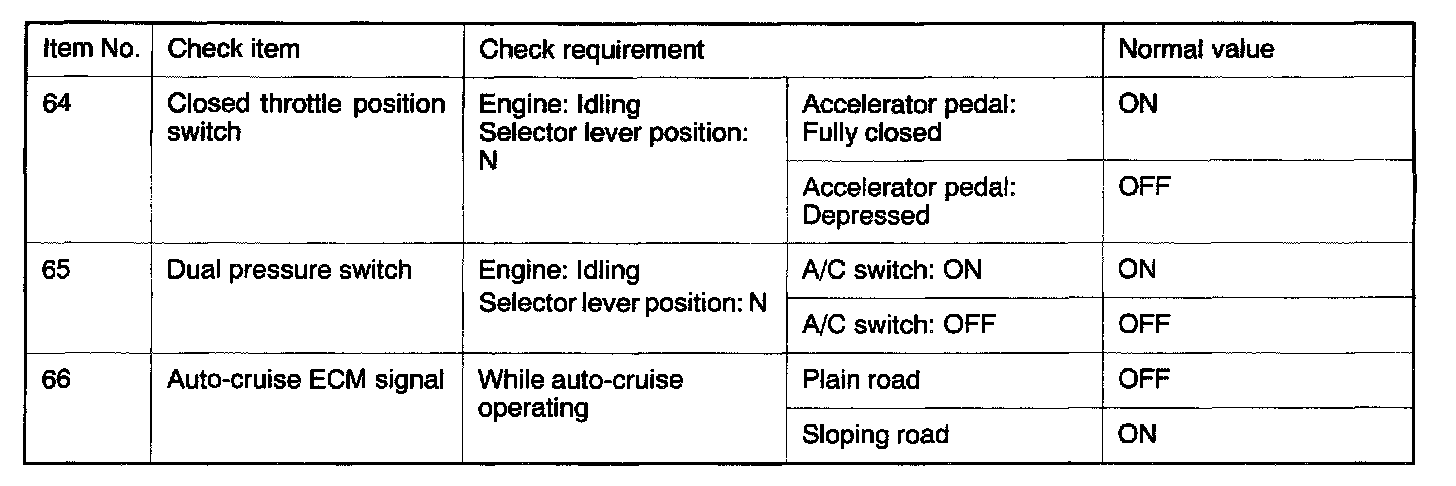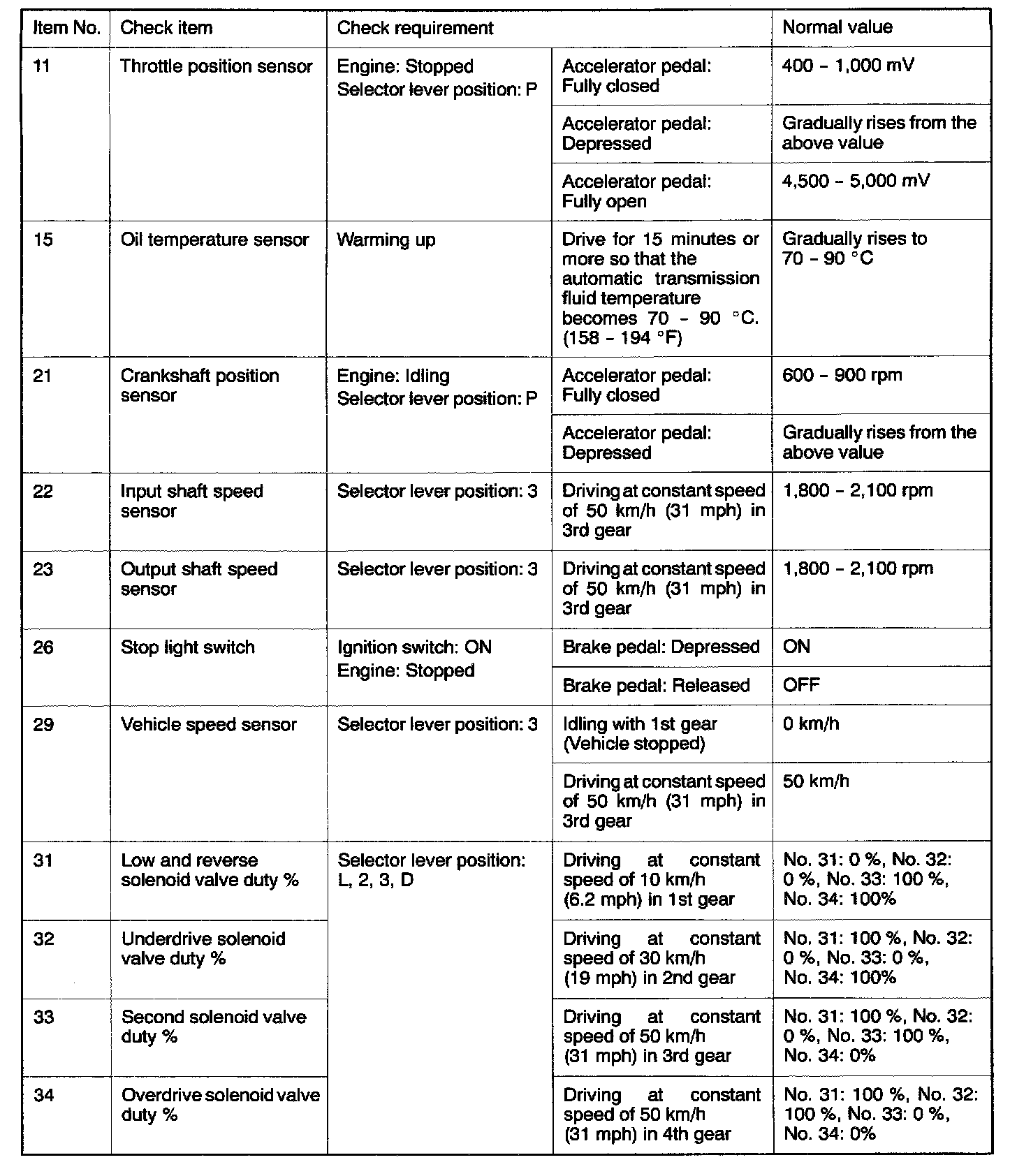 SERVICE DATA REFERENCE TABLE