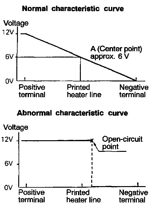 2. Turn ON rear window defogger switch. Measure heater element voltage with circuit tester at rear window glass center A.