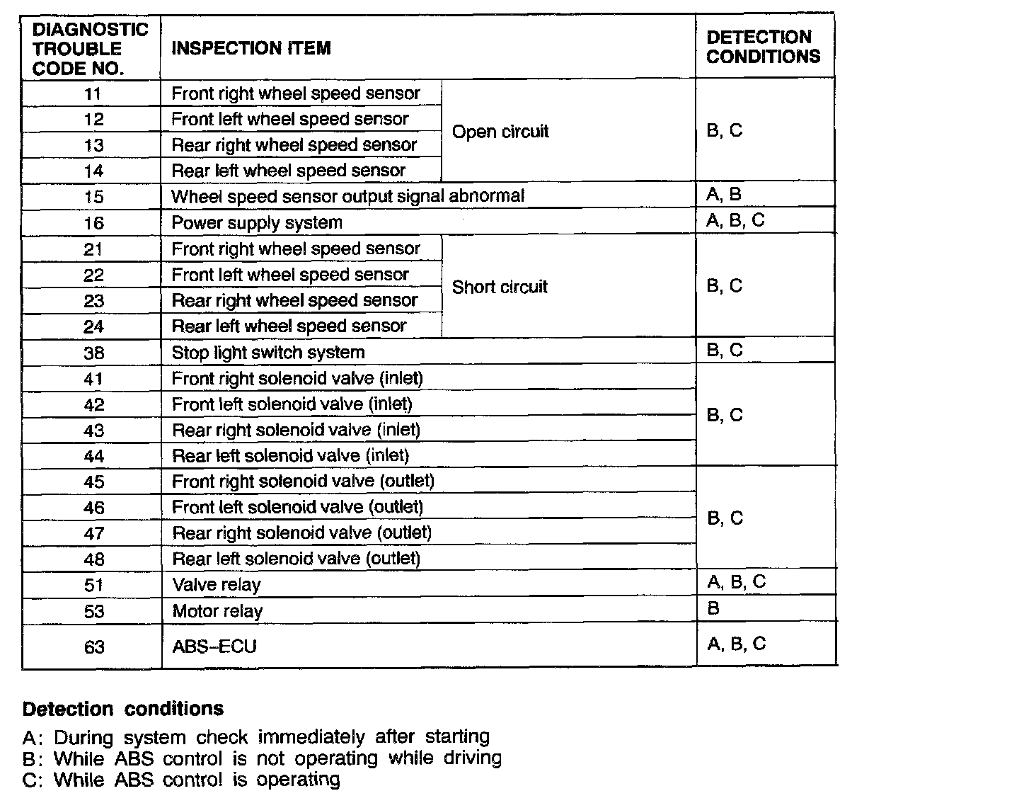 B: While ABS control is not operating while driving