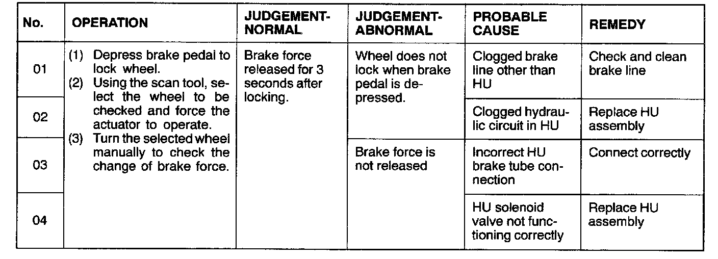 2. When the ABS has been interrupted by the fail-safe function, the scan tool actuator testing cannot be used.